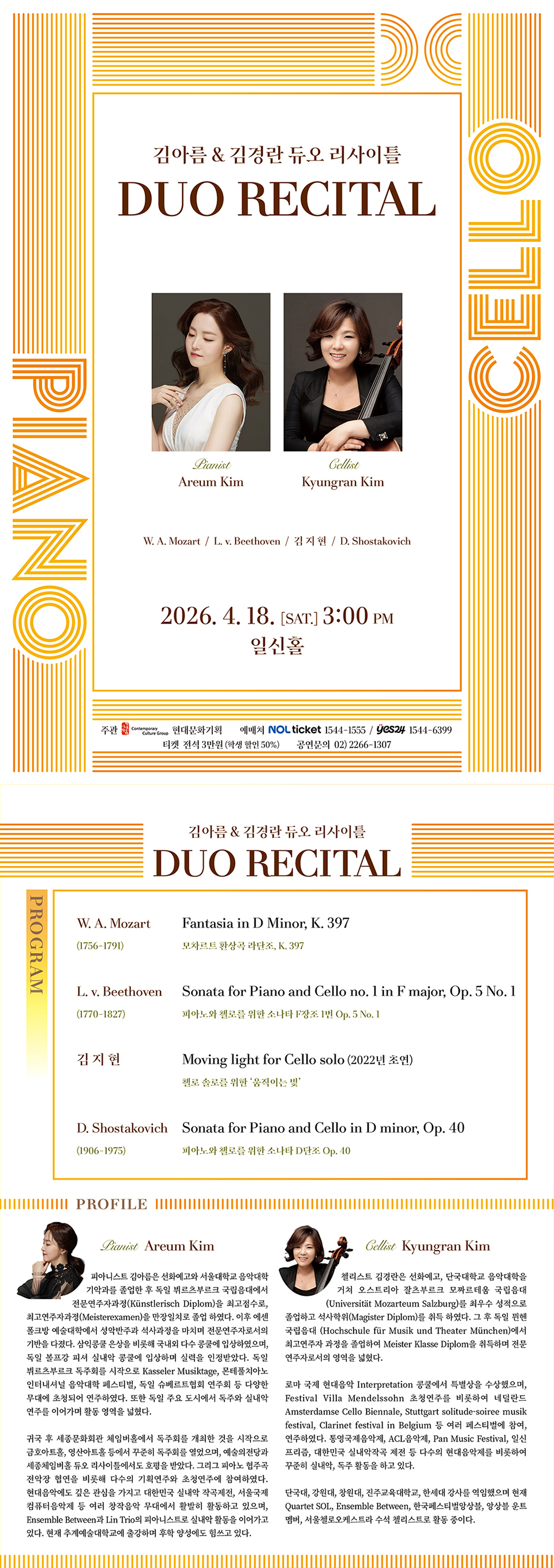 온: 콘서트, 김강현 & 김소현 피아노 듀오의 Four Hands, One Breath